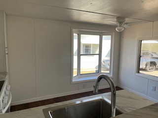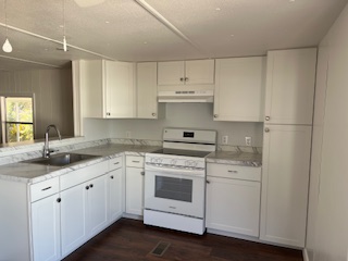 This home has been refurbished on the inside. New decking and vinyl flooring is throughout the home. The kitchen has new cabinets, new sink, new countertops and new stove. The bathroom has new sink and counter, new shower and toilet. The home has a nice screen room with vinyl windows and a longer carport,